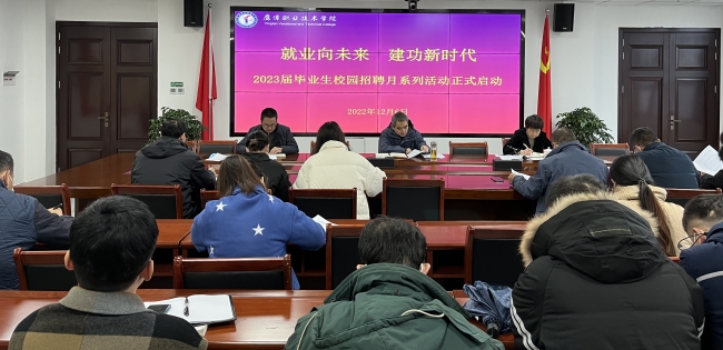 为深入学习贯彻二十大精神,落实中央和省政府“稳就业”“保就业”决策部署,根据教育部和省教育厅有关文件精神,做好beat3652023届毕业生就业工作,坚持“早谋划、勤调度、强落实、重成效”的总方针,2022年12月6日,beat365召开2023届毕业生校园招聘月系列活动启动仪式。院长易想春、副院长夏翠英、副院长王捷,以及招就办、教务处、学工处、系部负责人、系部书记和班主任(辅导员)出席启动仪式。
