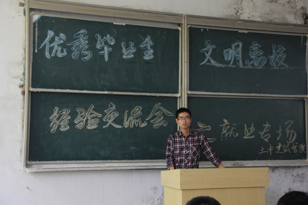 交流会上,来自2009级优秀毕业生代表就各自在参加选调生、国家公务员报考,国内外知名建筑企业求职等经历与在场同学进行了交流和分享。2009级土木工程专业8班胡慧航同学选择了求职就业,目前已经签约中铁二十四局,作为求职同学的代表,胡慧航与现场同学分享了自己实习、求职、面试的具体经历、经验教训及感悟心得,介绍了求职、面试的技巧以及应该注意的细节等问题。已签约到中铁四局的李坤同学;将赴淮南矿业集团工作的郑亮亮同学;参加安徽省“选调生”招考,现已通过笔试、面试的张磊、吴炎同学;已录取到四川省巴中市行政管理局的倪琴等同学先后发言。“精心准备、敢于尝试”是学长们留给学弟学妹们的深切忠告。